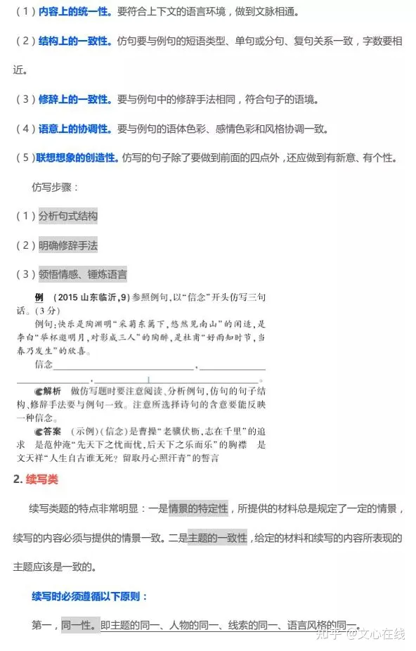 形式是“仿”,本质是“创”,关键是“想”。“仿”是仿句式、仿修辞。“创”是在符合整体意思的基础上有创新。“想”是在原句以外展开联想与想象。