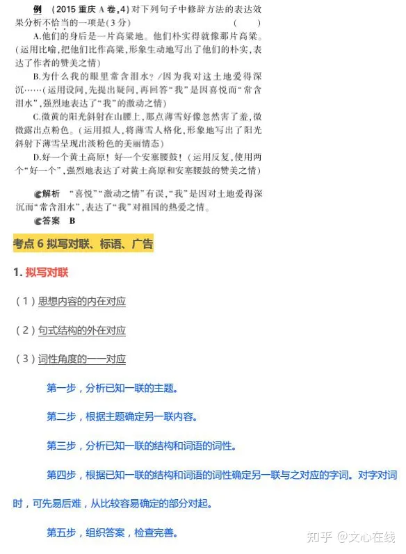 修辞的运用、修辞类别的辨识与作用的分析也常作为一种考查形式。