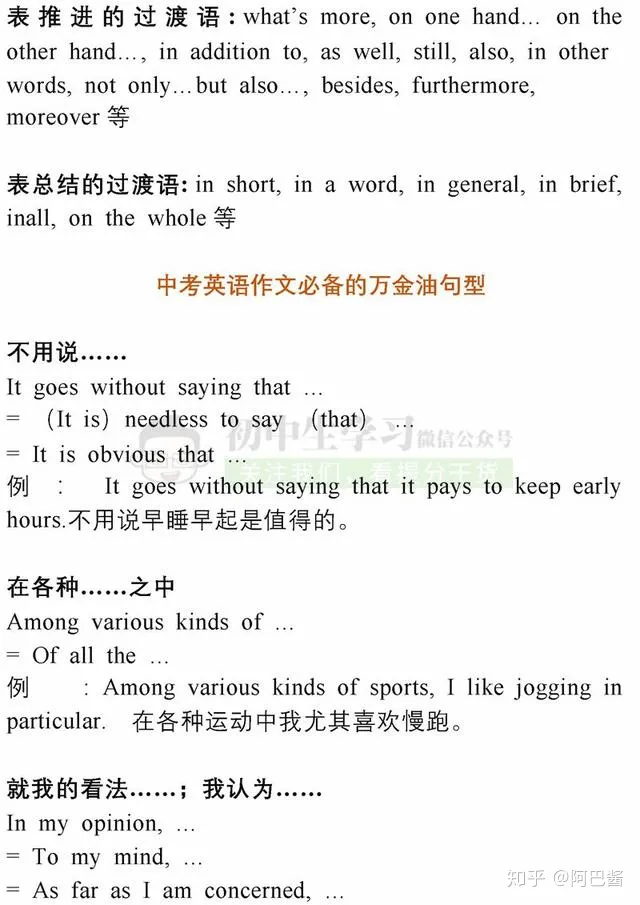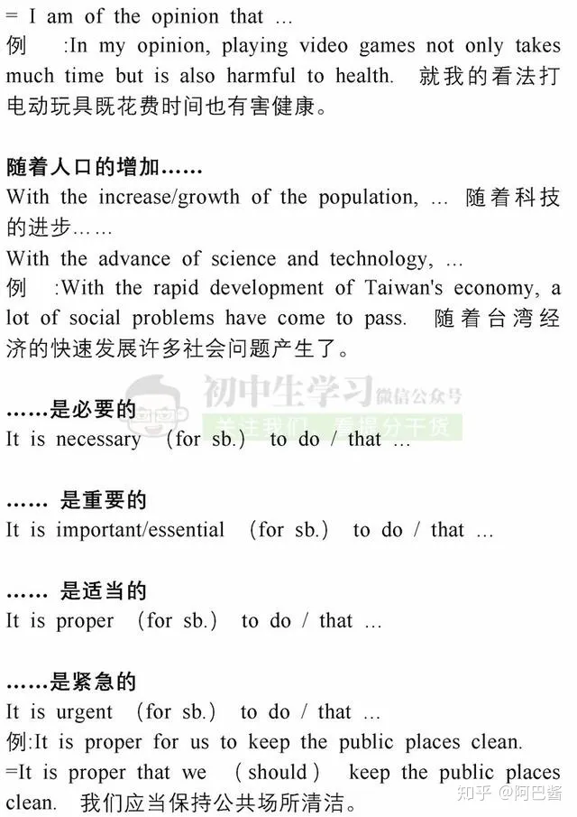 2023年初中英语满分作文必备句型