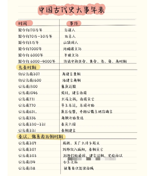 2023年初中中国古代史一定要背熟的大事年表