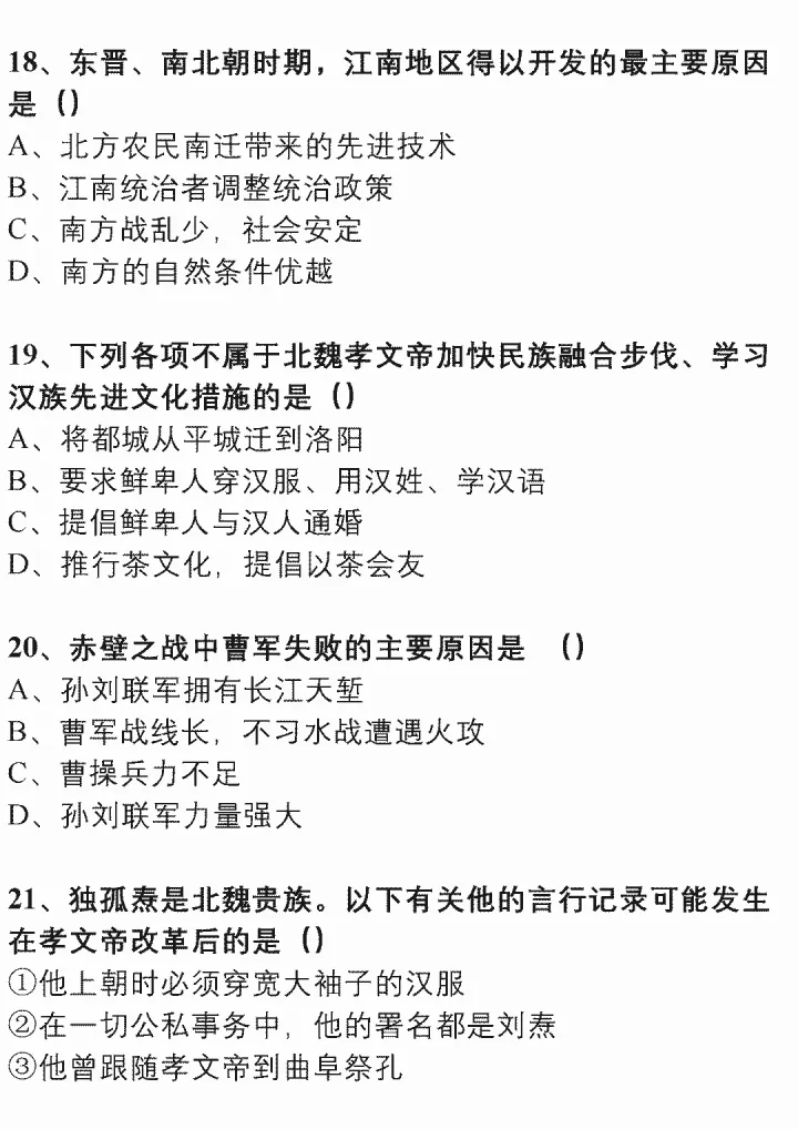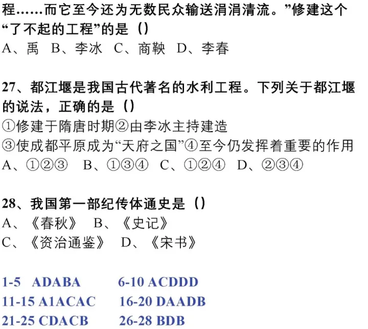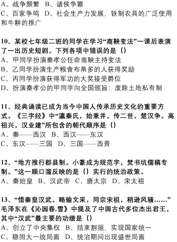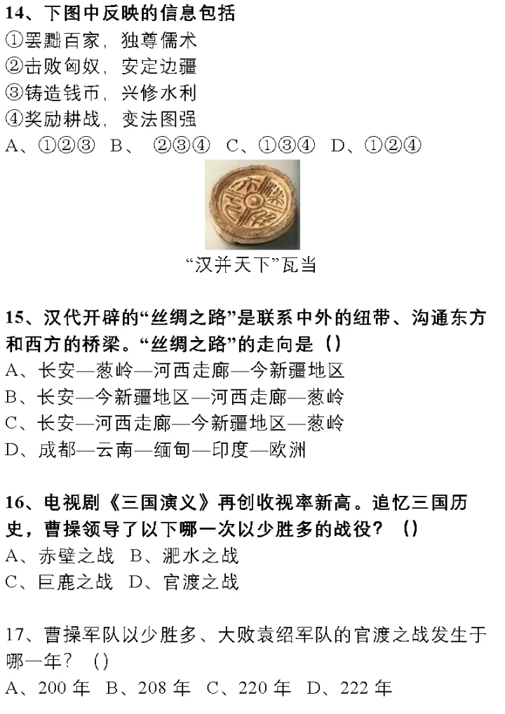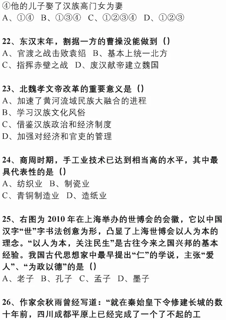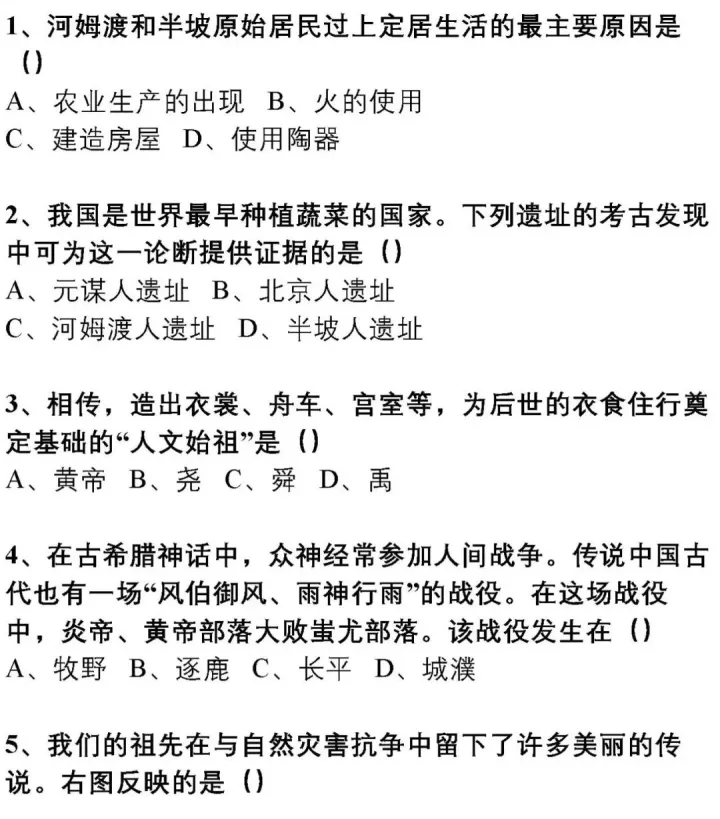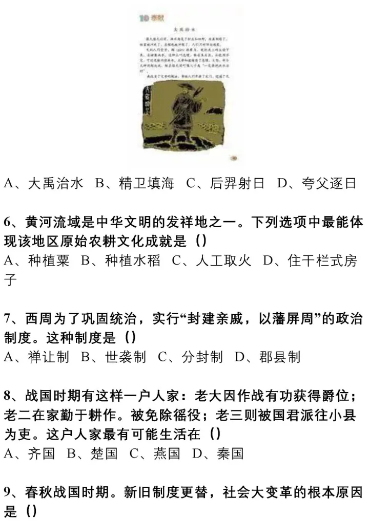 2023年初中中国古代文化史练习题(上)