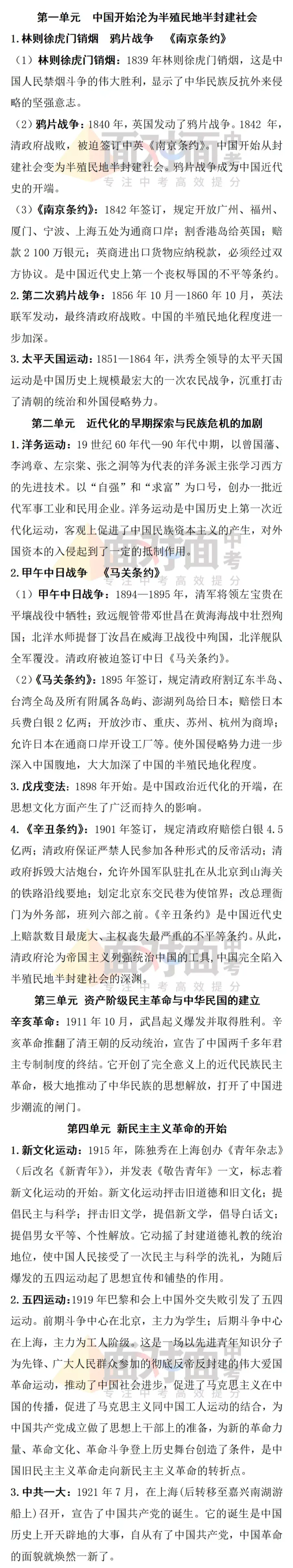 2023年初中中国近现代史知识点