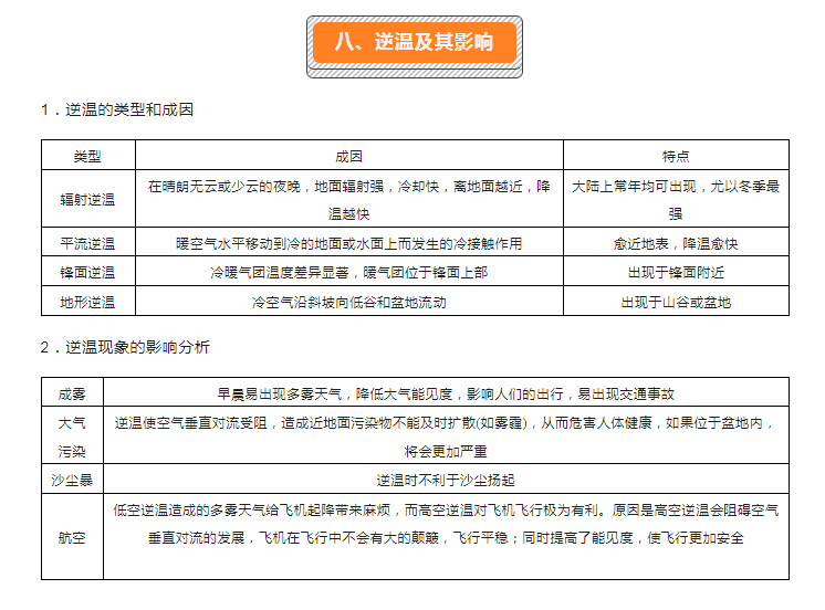 2023年初中自然地理核心考点:八、逆温及其影响