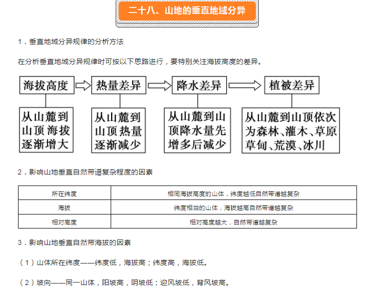 2023年初中自然地理核心考点:二十八、山地的垂直地域分异