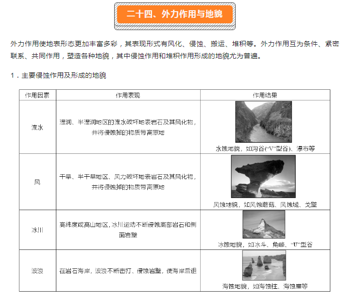 2023年初中自然地理核心考点:二十四,外力作用与地貌