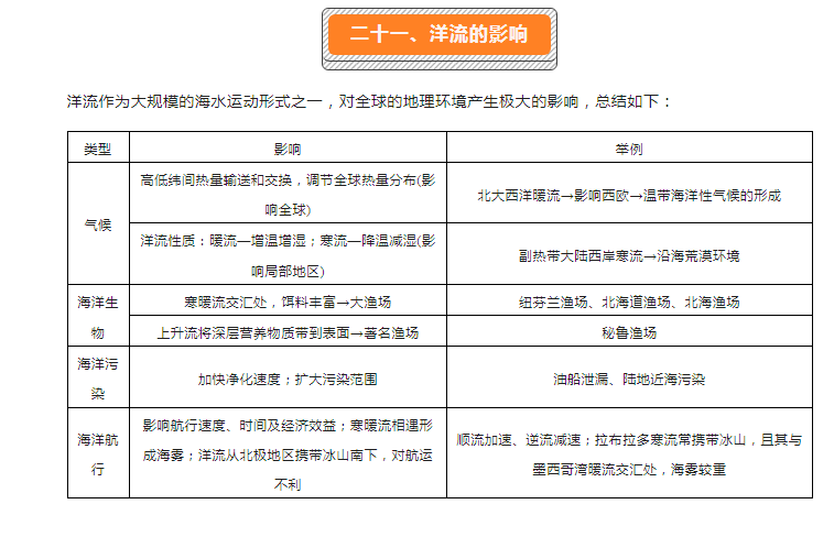 2023年初中自然地理核心考点:二十一、洋流的影响