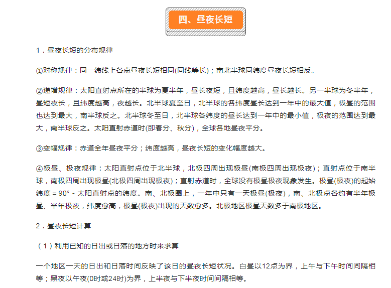 2023年初中自然地理核心考点:四、昼短夜长