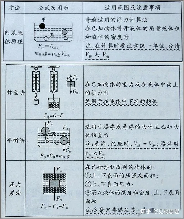 第二张图:求浮力的四种方法、公式、适用范围及其注意事项!