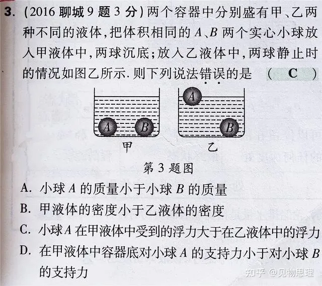 另一个角度是“密度”的角度,即液体密度和物体密度的大小关系。