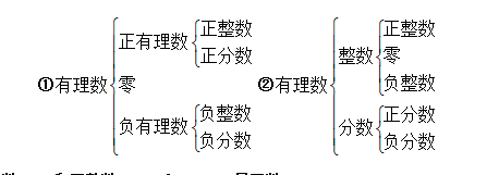 2、有理数(1)凡能写成分数形式的数,都是有理数,整数和分数统称有理数.注意:0即不是正数,也不是负数;-a不一定是负数,如:-(-2)=4,这个时候的a=-2。p不是有理数;(2)有理数的分类: