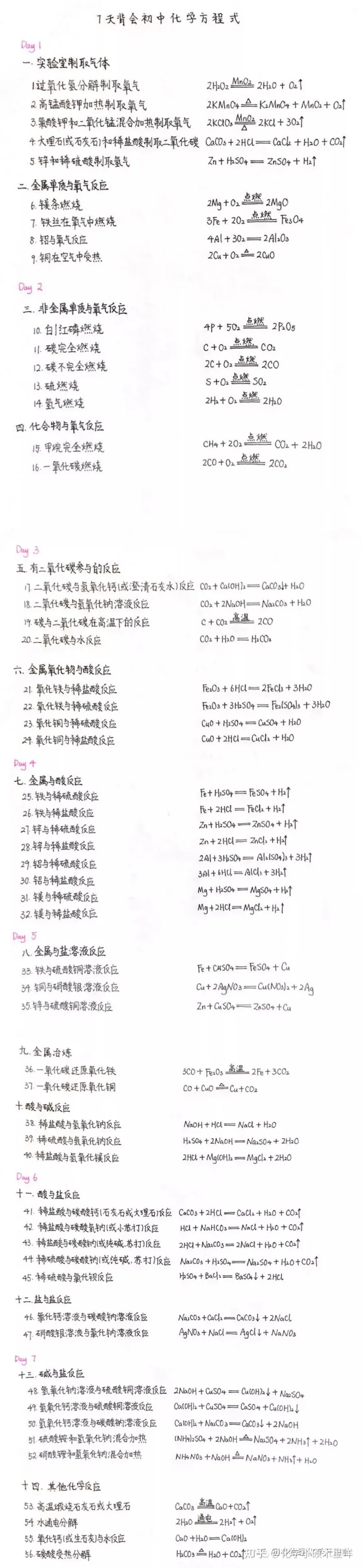 2023年七天背会初中化学方程式