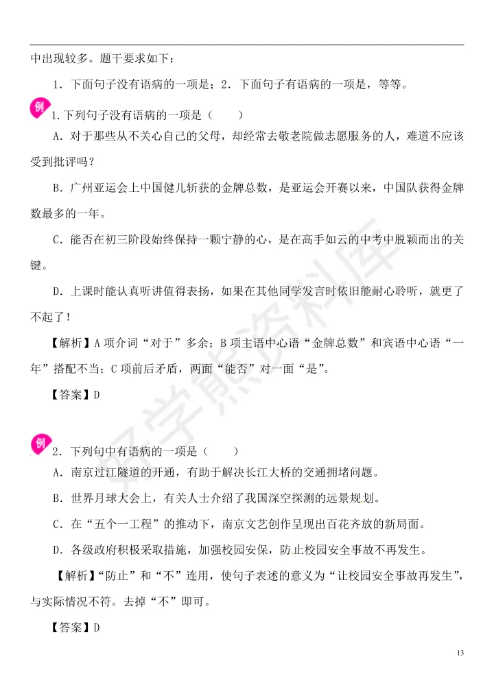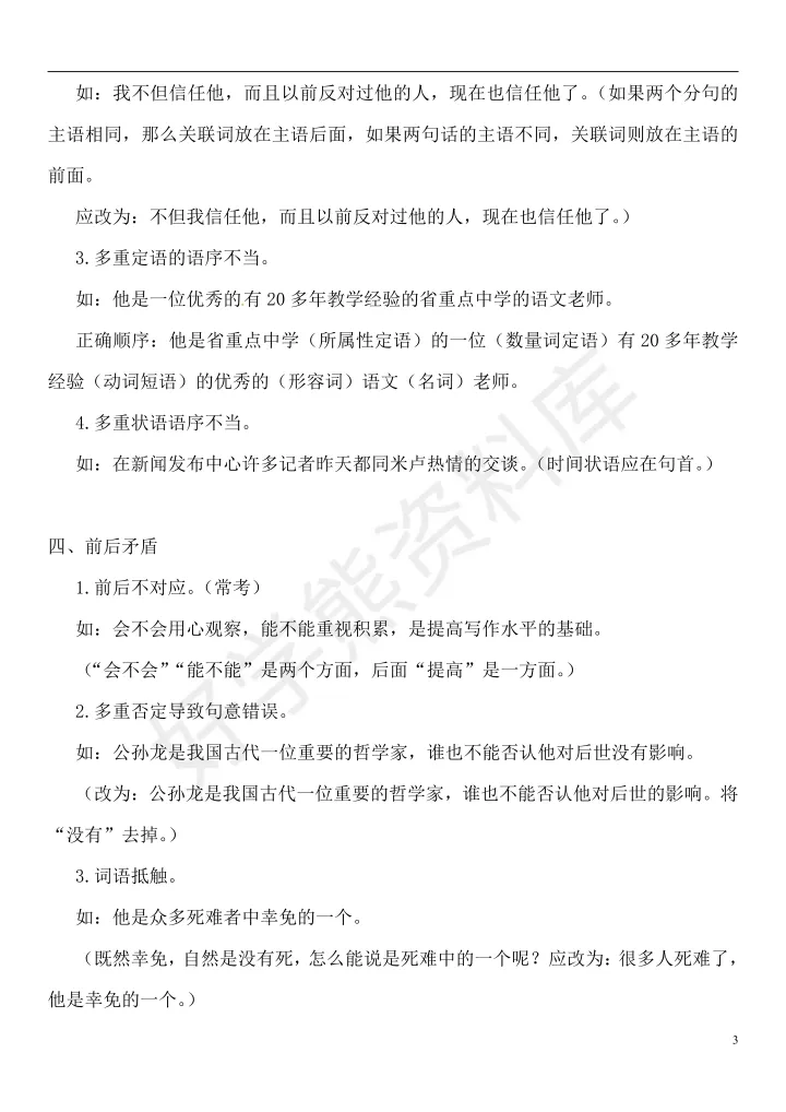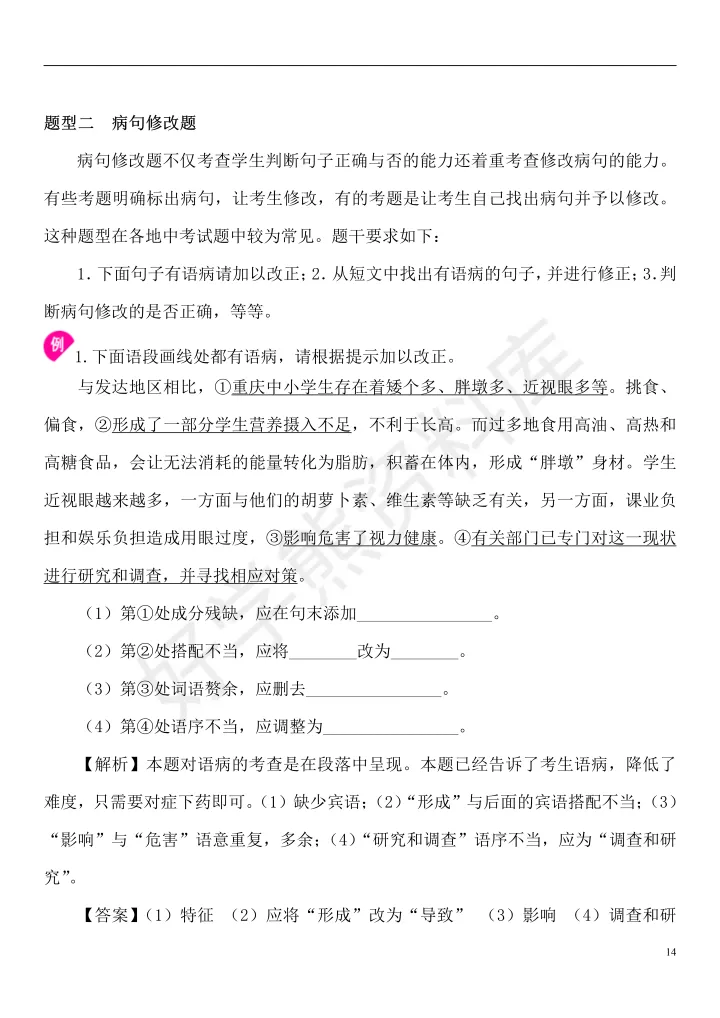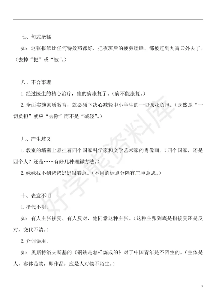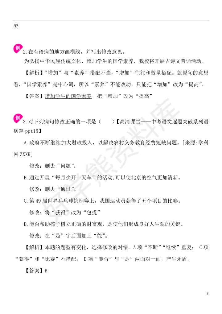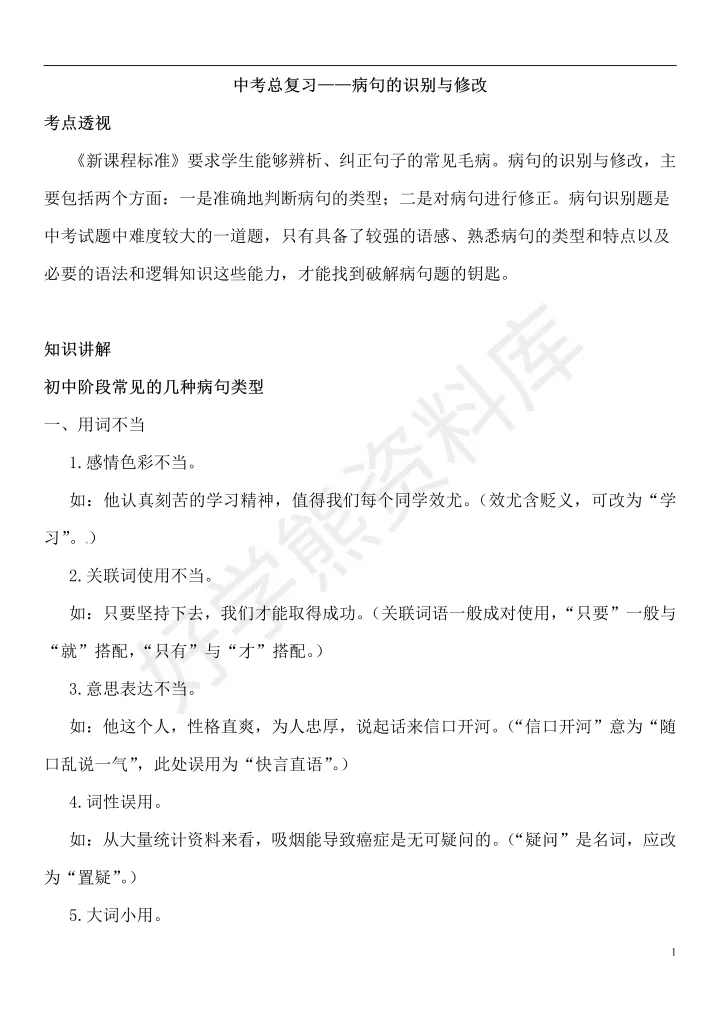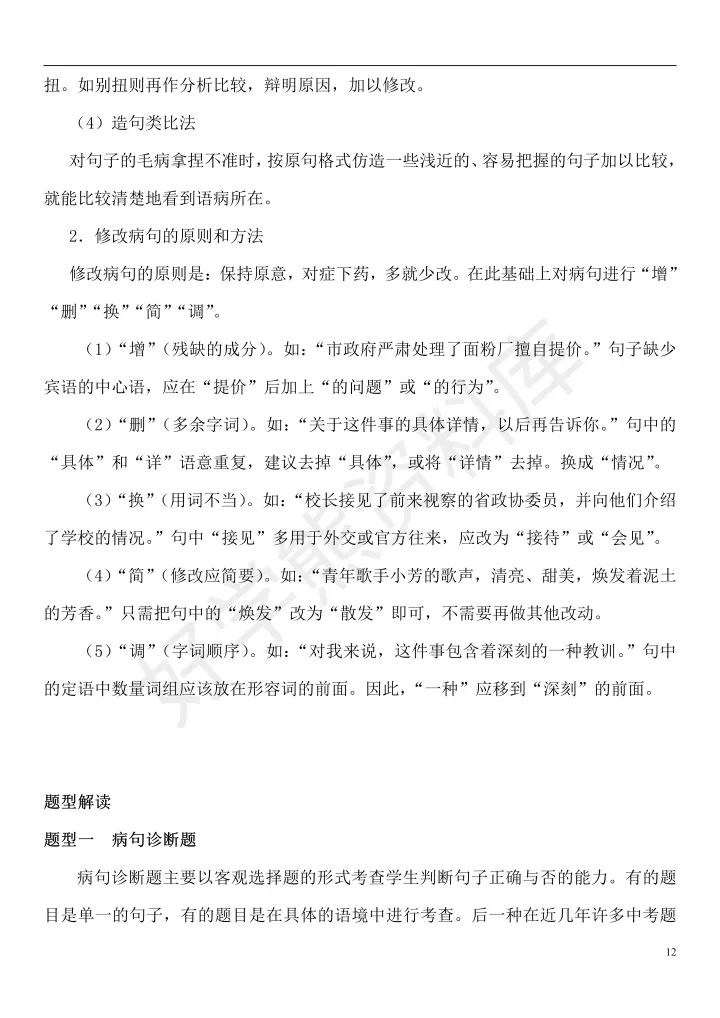2023年初中语文必考:修改病句和判断病句的15个实用方法