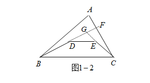 (法2)如图1-2, 延长BD交 AC于F,延长CE交BF于G,在△ABF和△GFC和△GDE中有:AB+AF> BD+DG+GF (三角形两边之和大于第三边) (1)GF+FC>GE+CE(同上) (2)DG+GE>DE(同上) (3)由(1)+(2)+(3)得:AB+AF+GF+FC+DG+GE>BD+DG+GF+GE+CE+DE∴AB+AC>BD+DE+EC。