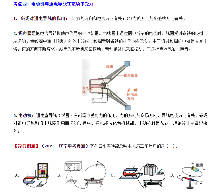 2023年中考物理电与磁考点四:动机与通电导线在磁场中受力
