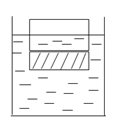 2.如图所示,一个由均匀材料组成的实心圆柱体,底面积为S,将它放入水中,静止后呈竖直漂浮状态,其体积的1/2露出水面。若在圆柱体下底面帖一层厚度为d、面积也为S的均质塑料(胶的质量和厚度均不计),再把它放入水中,仍能竖直漂浮于水中面,但露出水面的高度减小了h,求塑料的密度。