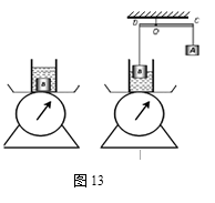 例2如图7甲所示,底面积为50cm2的圆柱形玻璃筒中装有一定量的水,放在水平台面上,底面积为10cm2的圆柱形物体A浸没在水中, 细绳对物体的拉力为F拉。如图7乙所示,当物体A有的体积露出水面时,作用在物体A上的竖直向上的拉力为4N,筒中水的深度比图7甲中水的深度下降了0.4 cm,此时,物体A所受的浮力为F浮,水在物体A底面处产生的压强为p。g取10N/kg,悬挂物体的细绳的质量忽略不计。