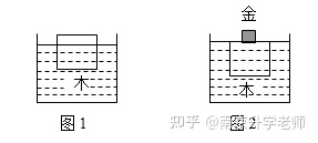 第二个状态如图2:以木块和金属块整体为研究对象,漂浮在水面上,F浮’%20=%20G木%20+G金。