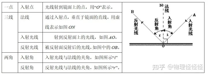 ③反射角等于入射角——两角相等
