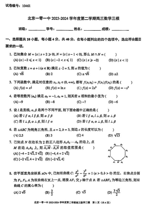 2024届北京一零一中高三三模数学试题(图片版)