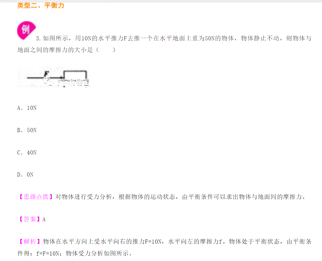 2024年初中物理力学典型例题类型二、平衡力