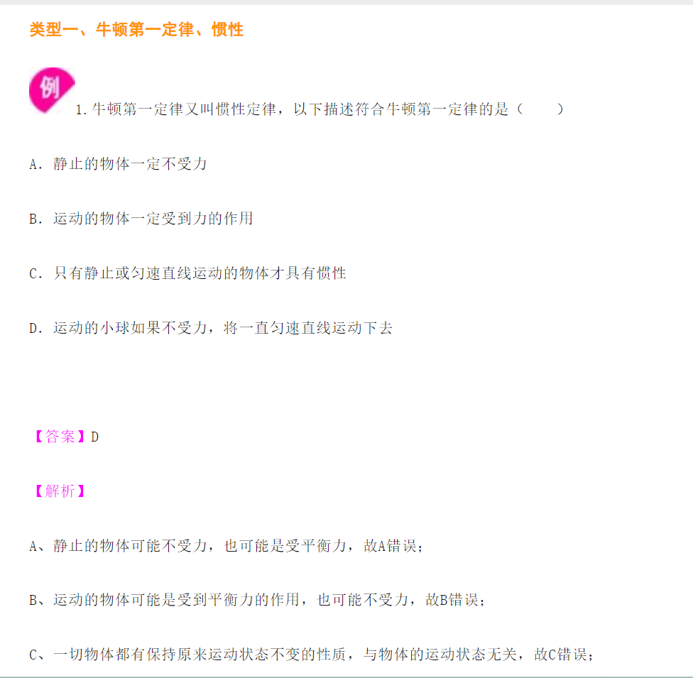 2024年初中物理力学典型例题类型一、牛顿第一定律、惯性