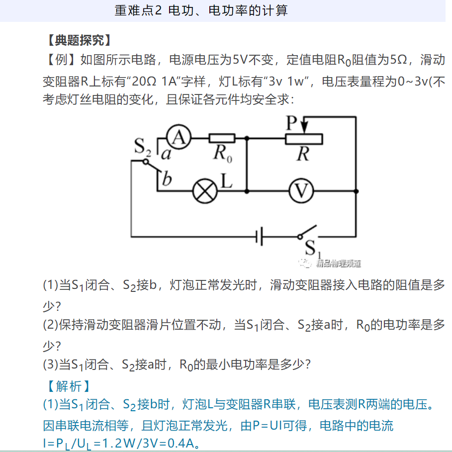 2024年九年级物理电功率重难点突破一