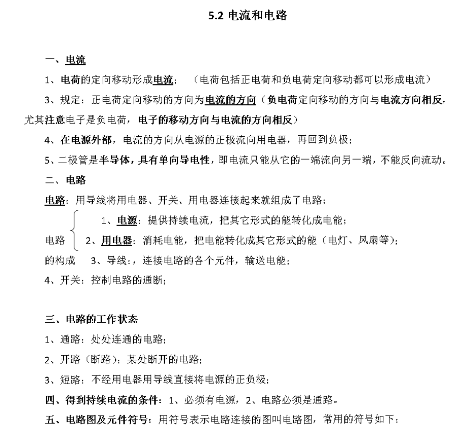 2024年中考物理“电流和电路”知识点总结一