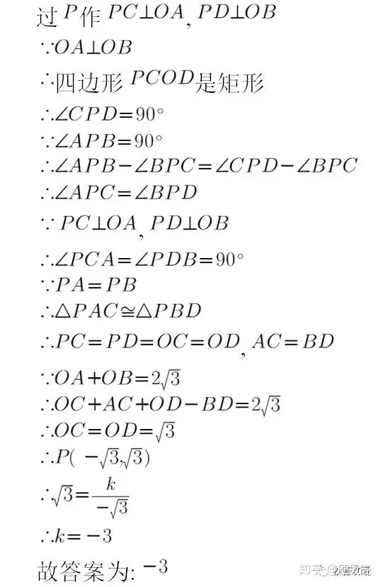 2. 因此,我们取一个特殊位置,当OA=OB=3时,PA=PB=3,此时K=-3。