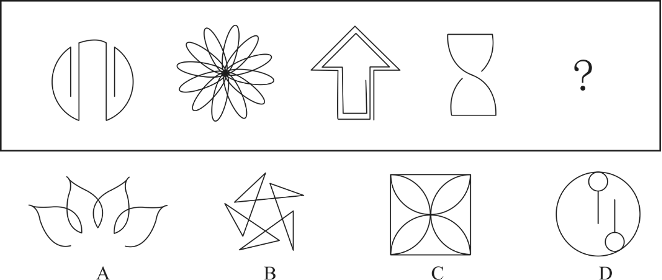 从所给的四个选项中,哪一项填入问号处,不能使之呈现一定的规律性: