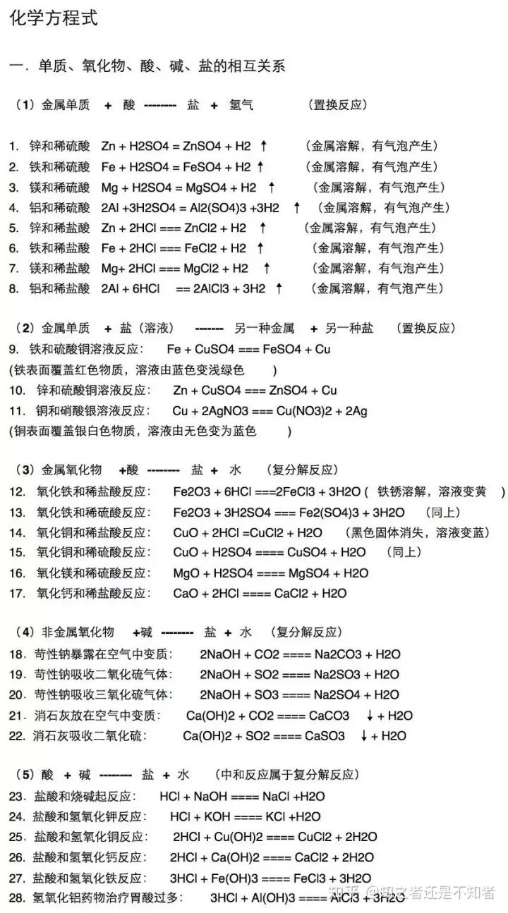 初中化学“化合价口诀+方程式”