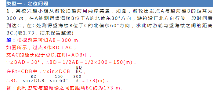 初中数学三角函数解实际问题:定位问题