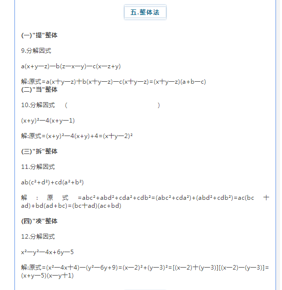 初中数学因式分解常见方法整理:分组分解法和拆添项法