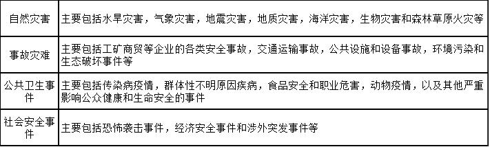 2006年1月8日,国务院发布的《国家突发公共事件总体应急预案》中指出,把突发公共事件分为以下四类: