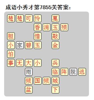《成语小秀才》是微信小程序中一个多连消成语的小游戏,游戏的难度很高,很多玩家不知道微信成语小秀才第7855关答案是什么,为了让大家快速过关小编带来了微信小程序成语小秀才第7855关答案。