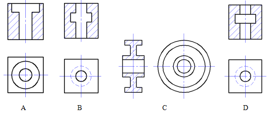 3、问题:以下不是由单一剖切面剖切后所形成剖视图的是( )
