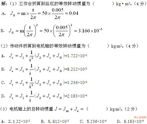 | 一、判断题(共 10 道试题,共 40 分。) 1. 系统论、信息论、控制论是机电一体化技术的理论基础,是机电一体化技术的方法论。 A. 错误 B. 正确 2. 双螺母消除轴向间隙的结构形式结构紧凑,工作可靠,调整方便,能够精确调整。 A. 错误 B. 正确 3. 传动机构的转动惯量取决于机构中各部件的质量和转速。 A. 错误 B. 正确 4. 齿轮传动系统中各级传动比的最佳分配原则中等效转动惯量最小原则是使所设计的齿轮传动系统换算到该齿轮传动系统输出轴上的等效转动惯量为最小。 A. 错误 B. 正确 5. 齿轮传动的啮合间隙会造成一定的传动死区,若在闭环系统中,传动死区会使系统产生低频震荡。 A. 错误 B. 正确 6. 自动控制是在人直接参与的情况下,通过控制器使被控对象或过程自动地按照预定的规律运行。 A. 错误 B. 正确 7.机电一体化产品不仅是人的手与肢体的延伸,还是人的感官与头脑的延伸,具有“智能化”的特征是机电一体化与机械电气化在功能上的本质差别。 A. 错误 B. 正确 8. 在滚珠丝杠螺母间隙的调整结构中,齿差式调隙机构的精度较高,且结构简单,制作成本低。 A. 错误 B. 正确 9. 采用偏心轴套调整法对齿轮传动的侧隙进行调整,结构简单,且可以自动补偿侧隙。 A. 错误 B. 正确 10. 在闭环系统中,因齿轮副的啮合间隙而造成的传动死区能使系统以1~5倍的间隙角产生低频振荡,采用消隙装置,以提高传动精度和系统稳定性。 A. 错误 B. 正确 二、单项选择题(共 10 道试题,共 40 分。) 1. 多级齿轮传动中,各级传动比相等的分配原则适用于按( )设计的传动链。 A. 最小等效转动惯量原则 B. 输出轴的转角误差最小原则 C. 重量最轻原则(小功率装置) D. 重量最轻原则(大功率装置) 2. 滚珠螺旋传动与其他直线运动副相比,以下哪一项不是滚珠螺旋传动的特点?( ) A. 传动效率高 B. 运动平稳 C. 定位精度和重复定位精度高 D. 制造工艺简单 3. 以下产品属于机电一体化产品的是( )。 A. 自行车 B. 电子计算器 C. 机械手表 D. 工业机器人 4. 多级齿轮传动中,各级传动比“前小后大”的分配原则不适用于按( )设计的传动链。 A. 最小等效转动惯量原则(小功率传动装置) B. 最小等效转动惯量原则(大功率传动装置) C. 输出轴的转角误差最小原则 D. 重量最轻原则 5. 齿轮传动的总等效惯量随传动级数( ) 。 A. 增加而减小 B. 增加而增加 C. 减小而减小 D. 变化而不变 6. 导程L0=8mm的丝杠驱动总质量为60kg的工作台与工件,则其折算到丝杠上的等效转动惯量为( )kg·mm2。 A. 48.5 B. 97 C. 4.85 D. 9.7 7. 以下产品不属于机电一体化产品的是( )。 A. 工业机器人 B. 打印机 C. 空调 D. 电子计算机 8. 机电一体化技术是以( )技术为核心,强调各种技术的协同和集成的综合性技术。 A. 自动化 B. 电子 C. 机械 D. 软件 9. 以下产品不属于机电一体化产品的是( )。 A. 机器人 B. 移动电话 C. 数控机床 D. 复印机 10.为提高机电一体化机械传动系统的固有频率,应设法( )。 A. 增大系统刚度 B. 增大系统转动惯量 C. 增大系统的驱动力矩 D. 减小系统的摩擦阻力 三、计算题(共 2 道试题,共 20 分。) 1. ![]() ![]() 2. ![]() ![]() |