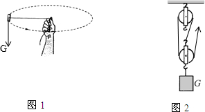 (1)小明同学用一根细线拴一块橡皮,甩起来,使橡皮绕手做圆周运动.请你在图1中画出橡皮所受重力示意图.(2)利用图2滑轮组提升物体,请画出最省力的绕法.