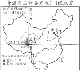 (2010?咸宁)读右边“青海省玉树地震图”,完成下列各题.(1)青海省的省级行政中心是______?市.