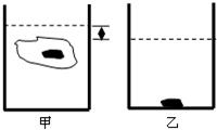 (2010?咸宁)某冰块中有一小石块,冰和石块的总质量是55g,将它们放在盛有水的圆柱形容器中恰好悬浮于水中(如图甲所示).当冰全部熔化后,容器里的水面下降了0.5cm(如图乙所示)
