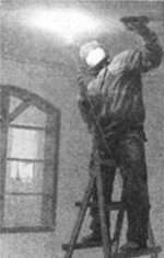 (2014?平顶山二模)小明同学的新家正在装修,周末他和爸爸一起来到施工现象,如图所示,工人师傅正在处理墙面,小明看到后十分纳闷:大白天工人师傅怎么还拿着灯泡来照明呢?小明
