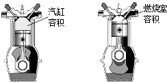 (2014?无锡)有一混合动力汽车,由汽车发动机(汽油机)和电动机为驱动系统提供动力,汽油发动机每一个工作循环活塞经历四个冲程,带动曲轴转动两圈,该汽油发动机的最大功率是69kW,以最大功率工作时曲轴转速为5000r/min.活塞从气缸一端运动到另一端所扫过的容积为气缸排气量,气缸容积与燃烧室容积之比为压缩比,如图为气缸容积和燃烧室容积的示意图,该车排气量是1.8L,压缩比为10:1,动力蓄电池额定电压为200V,容量(蓄电池放电电流和放电时间乘积)为150A?h,已知该车的动能E与其速度v的关系如下表所示.| v/ms-1 | 1 | 2 | 4 | 10 | 20 |