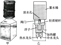 如图甲是一种常见的台式饮水机,图乙是它的结构示意图。控水槽内的塑料浮子其质量和厚度可忽略不计。浮子通过一轻质硬杆与阀门相连。当浮子浸没时,阀门恰好将面积为