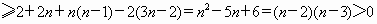 (2)当n=1时,a1=b1;当n=2时, 当n=3时, 当n=4时, 当n=5时, ∴当n≥5时,总有an>bn,所以存在自然数m,当n≥m时,总有an>bn. m的最小值为5. 当n≥5时, 所以当n≥5时,总有an>bn. |