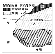 图为某区域示意图。读图完成1~2题。 小题1:关于图中甲、乙、丙、丁四区域,说法正确的是(???)