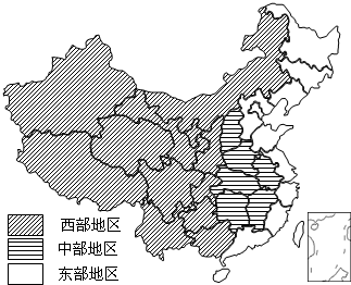 根据地理位置、经济建设条件和现实的经济技术水平等,我国划分为东部、中部、西部三个地区(如图).表为东西部地区一、二、三产业结构状况.请回答35~36题,