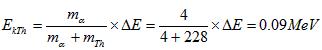 一个静止的铀核(原子一个静止的铀核(原子质量为232.0372u)放出一个α粒子(原子质量为4.0026u)后衰变成钍核(原子质量为228.0287u).(已知:原子质量单位1u=1.67×10-27