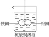 在装有水的烧杯中,用线(绝缘)悬挂一个由铁圈和银圈焊接在一起呈水平方向放置并处于平衡状态。如果向水中加入CuSO 4 溶液,金属圈将向_______倾斜,因为___________________。