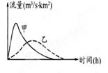 该图为相同降水量下的城市化前后地表径流过程曲线。读图,回答问题。关于甲、乙两条曲线的叙述,正确的是()①甲代表城市化前的地表径流曲线②乙过程有利于地下水的补