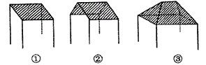 | 一间民房的屋顶有如图三种不同的盖法:①单向倾斜;②双向倾斜;③四向倾斜;记三种盖法屋顶面积分别为P 1 、P 2 、P 3 .若屋顶斜面与水平面所成的角都是α,则 |