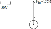则它们的合力F合=5050N-4900N=150N,方向竖直向上.合力的图示如图所示.